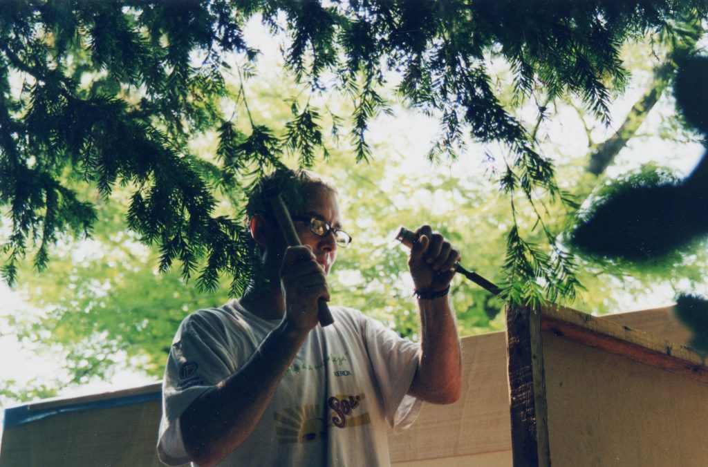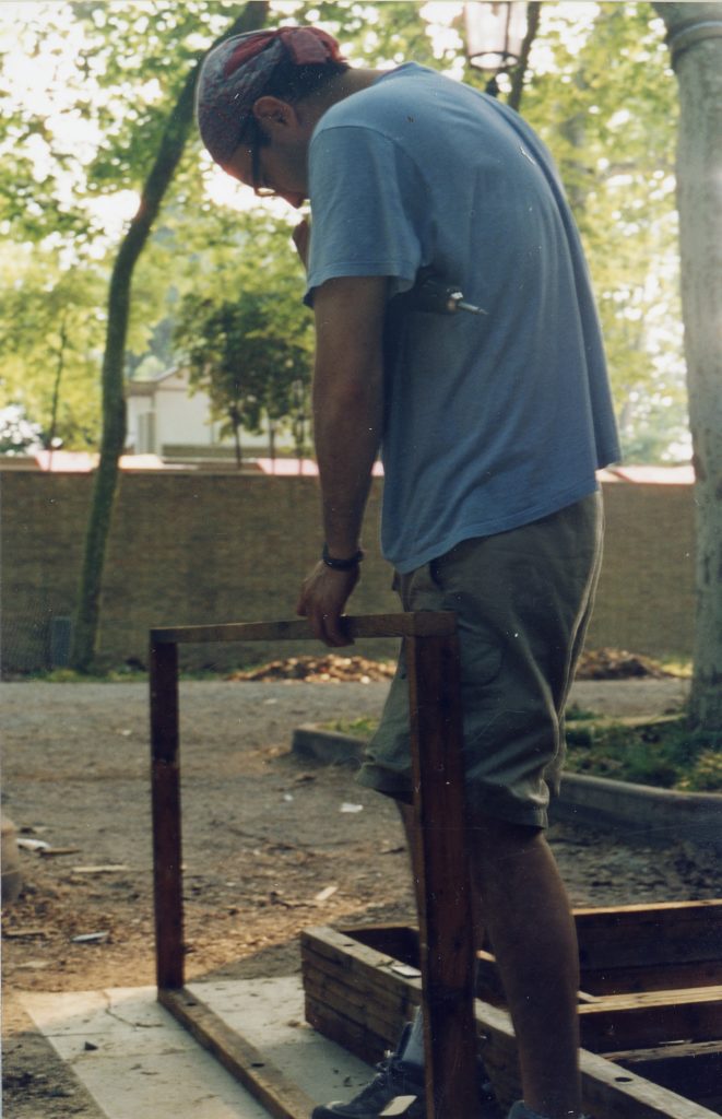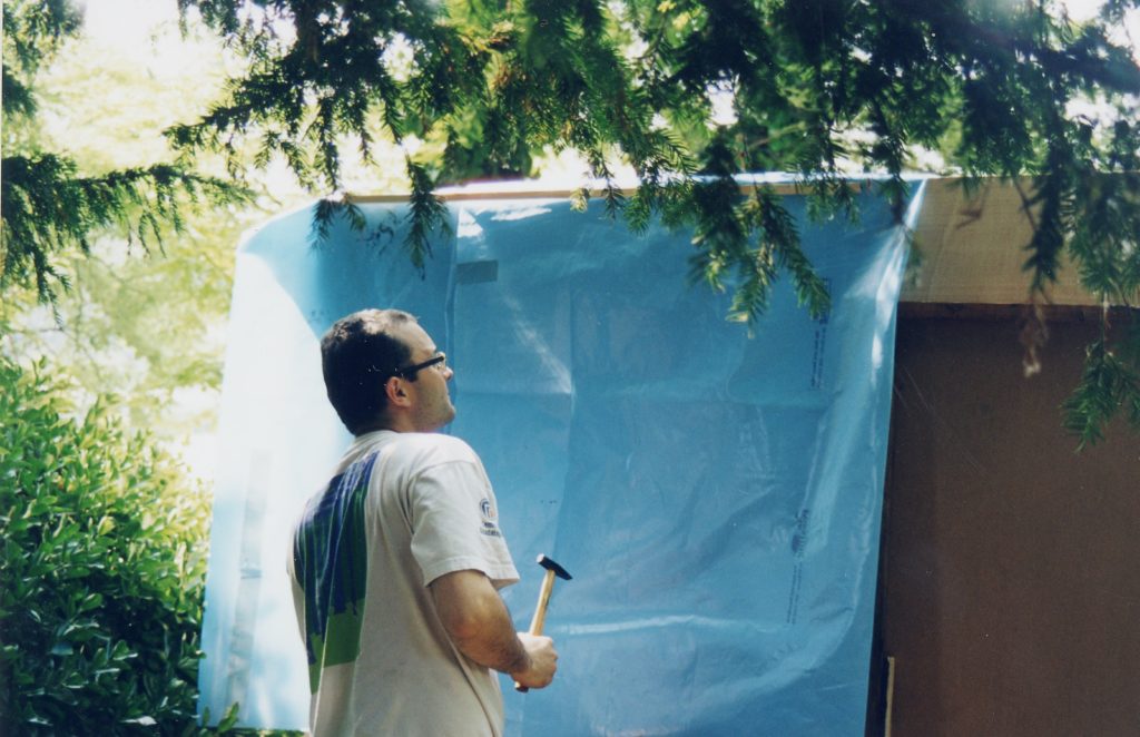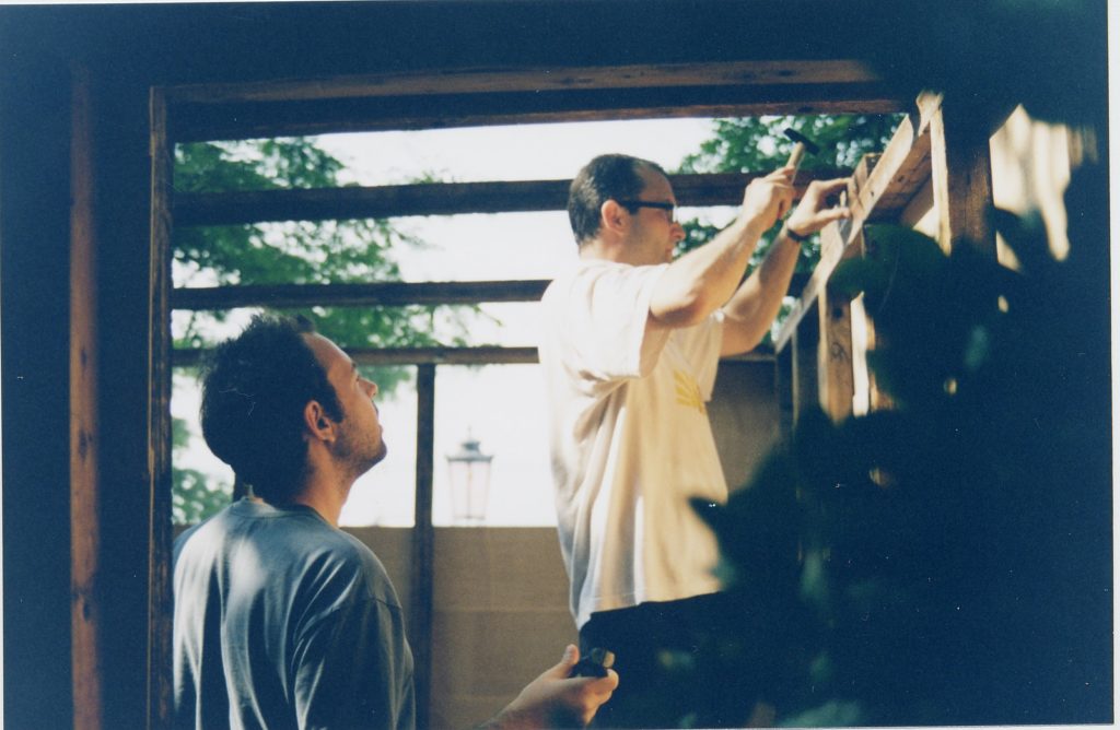 The favela pavilion, located between the Canadian and German pavilions, was opened to the public on June 12 2003. It was built on Sunday June 8 using the scrap materials generated from the setting up of the national pavilions in the gardens of the Biennale, without any permit or contact with the organizers of the exhibition, just as the favelas of the Third World.