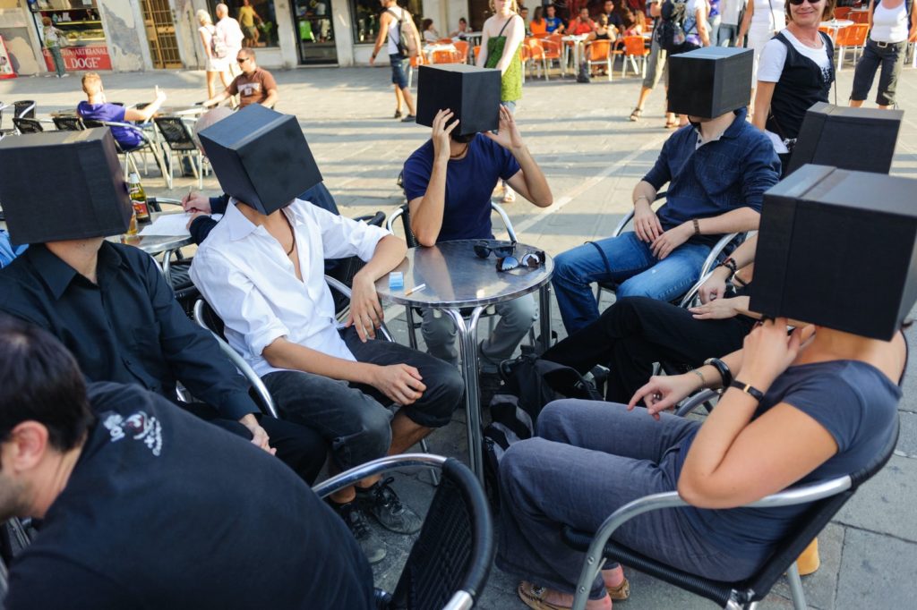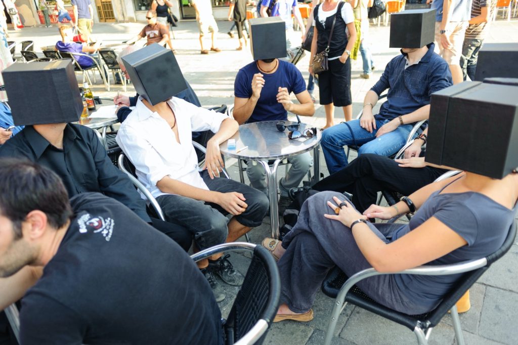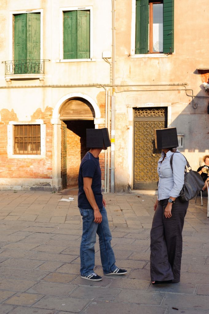 This project is an evolution of the preceding intervention, carried out for the second edition of Transmission in 2005 (an itinerant intervention making stops in the markets of Verona, Treviso and Mestre, leading the participating artists to face different contexts). Private Tears is a kit packaged in a specially designed box, containing the pieces and instructions for the assembly of the onion glasses, thus giving the users the possibility to cry in private, choosing the appropriate moment and place.