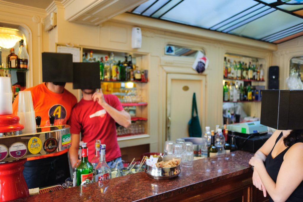 Intervention conceived within the context of Transmission 2004, an exhibition that turned the city of Bassano del Grappa into a theatre for artistic operations from the workshops of the Faculty of Visual Arts of the IUAV (University of Architecture, Venice). Set up as a stand amongst those of the market, Selling Tears functioned as a performance consisting in the sales of glasses with halved onions in place of the lenses - instruments which lead to a free flow of tears. Tears purify the soul, yet often and for various reasons, we hold them in, thus Selling Tears is an invitation to live our emotions with spontaneity.