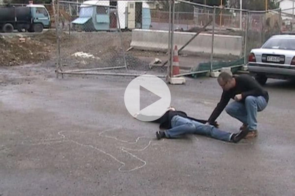 In this case, the intervention consisted of tracing the chalk outlines in the square in front of the Belgrade Parliament Building , theatre of various political confrontations and protests, over the course of the complicated historic events of the city. It is therefore a place which endows the outlines with significant commemorative implications. Of interest was the extended participation of the other artists, present in the city at that time for the Real Presence 2005 workshop.